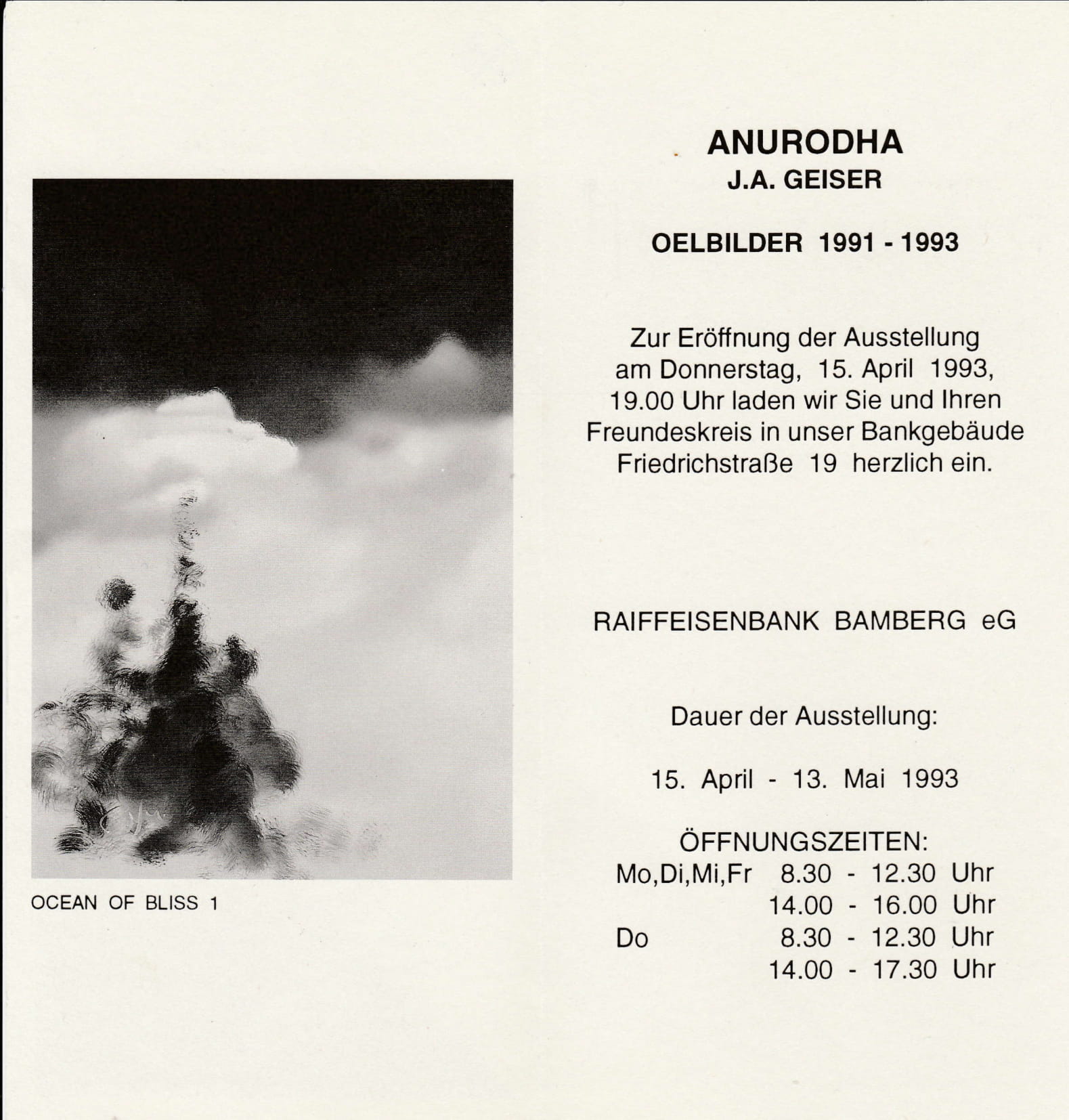 2nd and 3rd page of the invitation card to the exhibition in the "Raiffeisen Galerie" in Bamberg